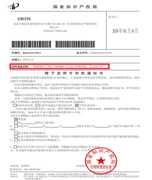 本研究工作得到了湖南自然科学基金、湖南省教育厅重点项目、湖南省卫健委重点项目支持,此外这项原创性成果获得国家发明专利快速授权,并获得第一届湖南省研究生医学创新大赛三等奖和2022年衡阳医学院学术墙报日十佳学术新人奖。该项成果的顺利完成,得益于附属南华医院何军主任技师的紧密合作(已发表中科院1区IF=12.6分1篇,2区IF=6分1篇,1篇待发),为该项研究提供了临床样品、资金和场地;得益于基础和临床医院的创新人才模式(校内和校外导师联合培养),培养了多名优秀研究生。