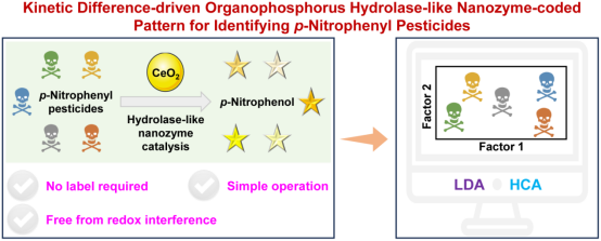 图1.动力学差异驱动的类水解酶编码模式在对硝基苯类农药识别中的应用(图片来自Analytical Chemistry)