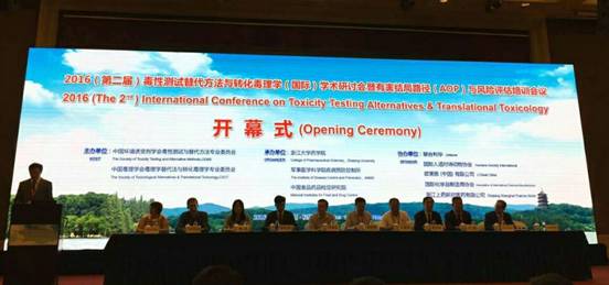 由中国环境诱变剂学会毒性测试与替代方法专业委员会和中国毒理学会毒理学替代法与转化毒理学专业委员会联合举办的“2016(第二届)毒性测试替代方法与转化毒理学(国际)学术研讨会暨有害结局路径(AOP)与风险评估培训会议”于9月11-14日在杭州三立开元名都酒店顺利召开。会议的承办单位为浙江大学药学院、军事医学科学院疾病预防控制所和中国食品药品检定研究院。本次国际学术研讨会吸引了中国、美国、英国、德国、韩国等多个国家知名大学、科研院所及企业的逾500专家学者参会。大会邀请了17位来自国内外毒性测试替代方法与转化毒理学领域的资深专家做了大会报告,并为国内外相关领域的中青年专家设置了“毒性测试替代方法”及 “转化毒理学研究前沿”两个专题报告会场,同时还开展了“中国毒理学会联合利华毒理学替代法奖”和“青年优秀论文奖”评选与颁奖活动。会议分别于9月11日和9与月14日为广大参会者举行了“人类健康风险评估:原理及案例分析”和“有害路径结局:发展与实践”两个专题培训。