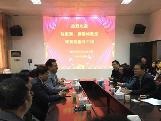 2018年3月10日上午,应南华大学best365英国在线体育邀请,中山大学best365英国在线体育教授、流行病学和微生物学专业博士研究生导师陆家海教授,河北医科大学best365英国在线体育卫生检验学教研室主任、博士研究生导师康维钧教授造访我院,为学院带来了一场丰盛的学术盛宴。学术报告的主题分别为“公共卫生应对新策略—One Health”和“超常价态过渡金属配合物化学发光体系及卫生监测方法建立”。讲座由best365英国在线体育院长龙鼎新教授主持。