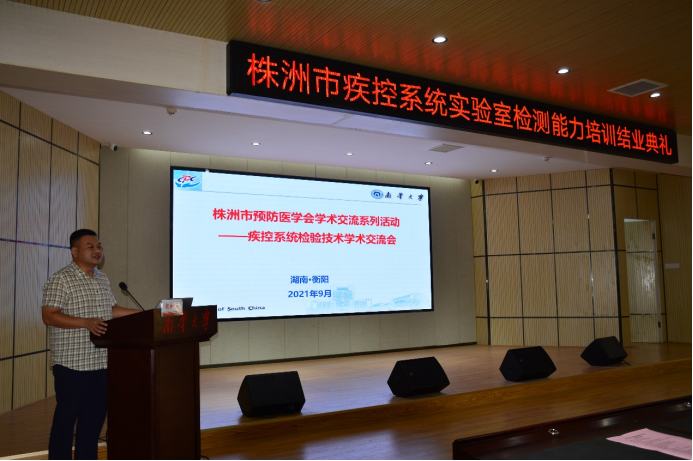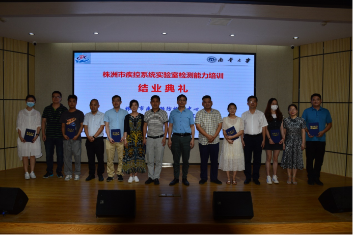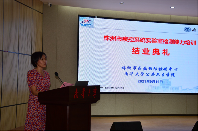 9月16日,株洲市疾控系统实验室检测能力培训结业典礼在南华大学best365英国在线体育举行。参加结业典礼的有株洲市疾病预防控制中心副主任李清竹和颜湘峰,微检科科长曹正安,理化检验科科长贺放晴,best365英国在线体育党委书记张天成,副院长杨慧仙和张朝晖,卫生检验与检疫系主任陈丽丽,教学办主任于军晖,参加培训的部分学员,共约50余人。