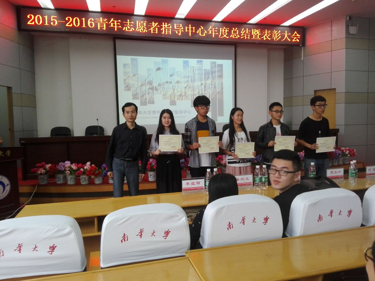 2016年5月29日下午3点,南华大学青年志愿者2015-2016年度表彰大会于南华大学图书馆一楼学术报告厅隆重举行。best365英国在线体育青年志愿者分队获得“南华大学优秀青年志愿者分队”称号,其中来自best365英国在线体育的谢建玲同学获得“校优秀青年志愿者干部”称号,姚晶同学获得“校十佳青年志愿者”称号,薛盼盼、朱晟辰、朱冰玉、彭远军、张姁等五名同学获得“校优秀志愿者”称号。