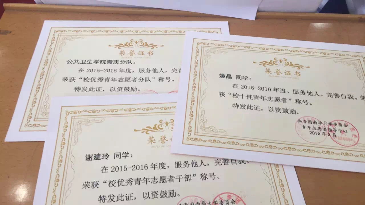 一代代公卫青志人,在认真践行志愿者承诺,弘扬志愿者精神的同时,也赢得了不少赞美与荣誉。best365英国在线体育青年志愿者分队曾被授予“大学生进社区先进集体”、“优秀青年志愿者分队”、“除癣先锋队”等称号。在2015年12月12日国际志愿者日晚会上,公卫青志分队精心编排的光影剧一举夺得“最佳节目”奖。同时,公卫青志分队中也不断涌现出一批批优秀青年志愿者、优秀青年志愿者干部及十佳青年志愿者,为分队及学院增光添彩。