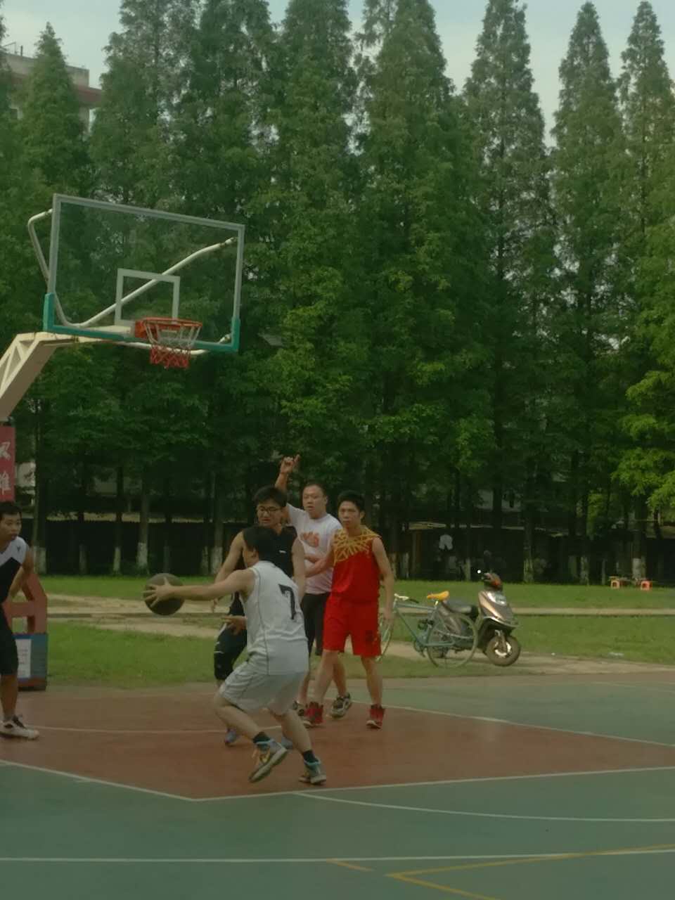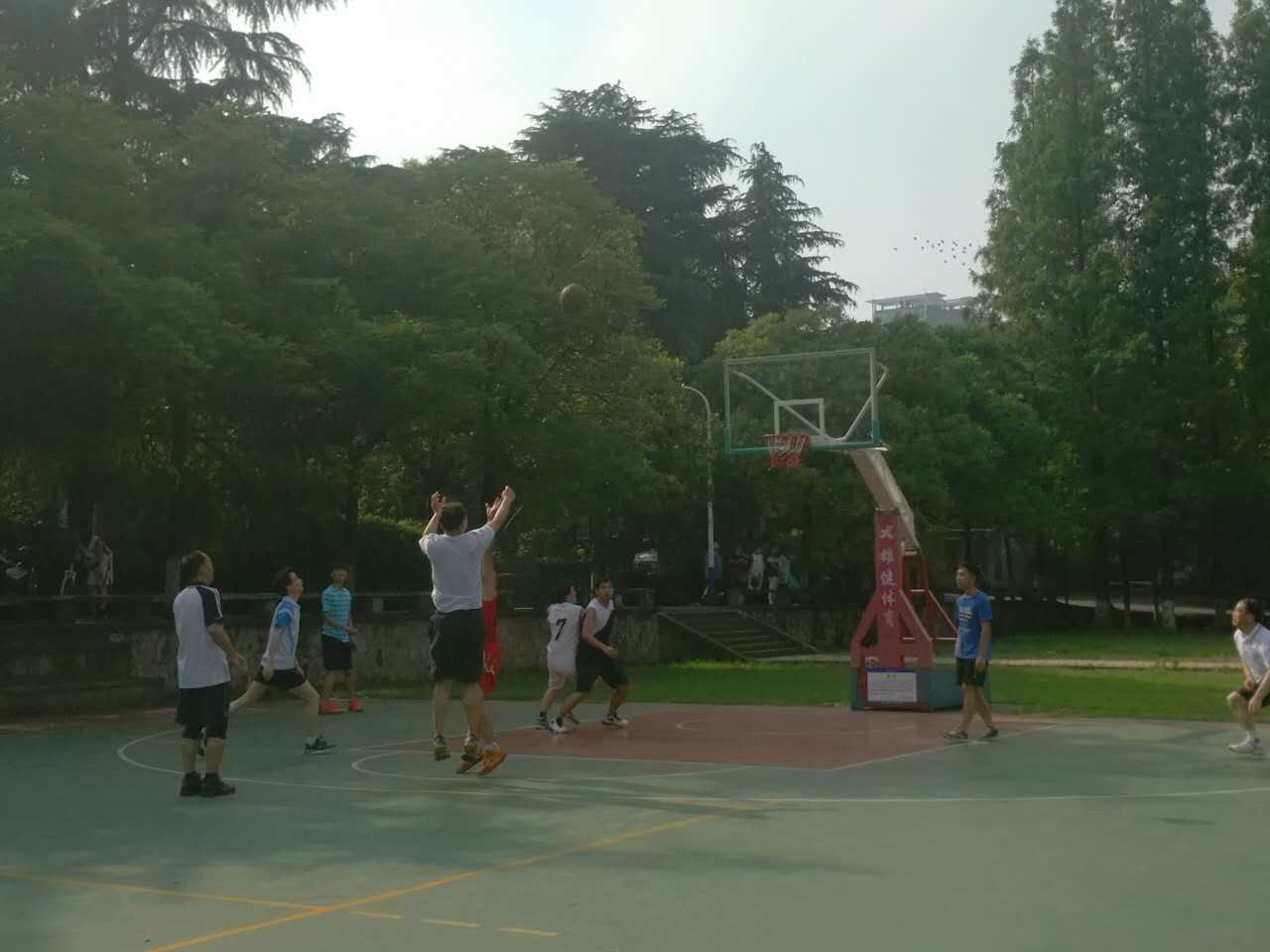下午四点整,比赛正式开始。虽然是友谊赛,但场上的队员们奋力拼搏,打得异常激烈。教工队凭借着过人的意识,娴熟的配合,频频得分,而毕业生代表队也不甘示弱,比分紧咬教工队。精彩的比赛吸引了众多师生驻足观看。经过90分钟的角逐,比赛顺利落下帷幕,教职工代表队以51:49的微弱优势取得了本次比赛的胜利。