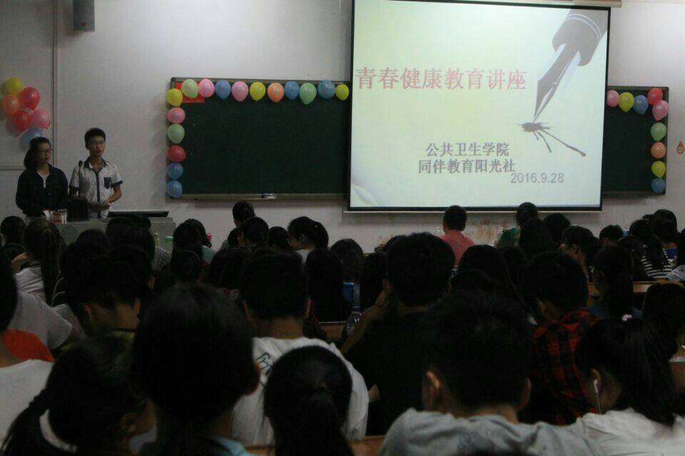 2016年9月28日,best365英国在线体育同伴阳光社在南华大学雨母校区逸夫楼502教室为best365英国在线体育全体16级学生举办了一次青春健康教育讲座,莅临此次讲座的嘉宾有南华大学心理健康教育老师郑宇以及best365英国在线体育团委书记涂彩蓉。