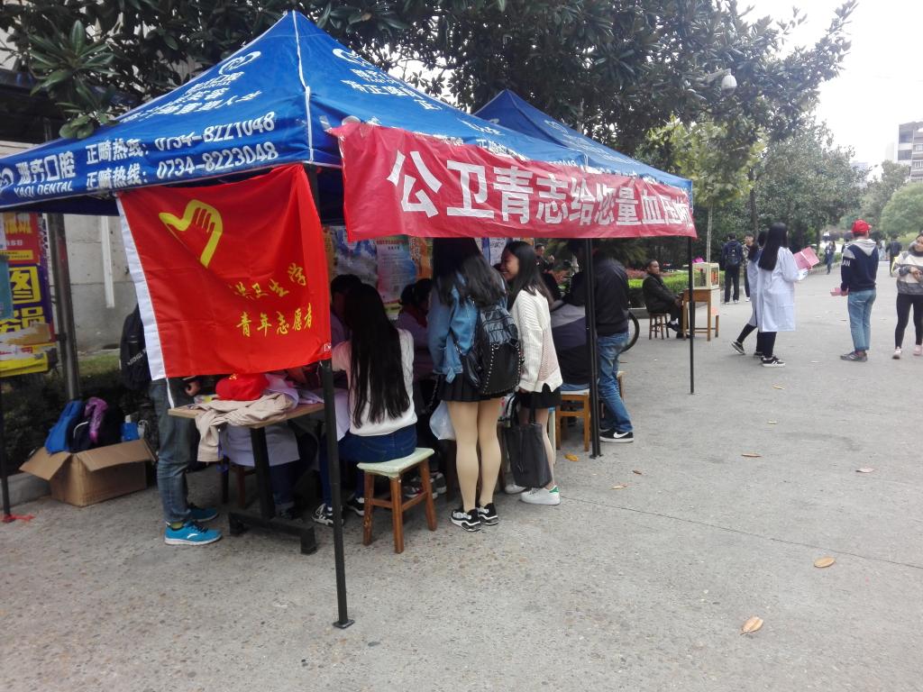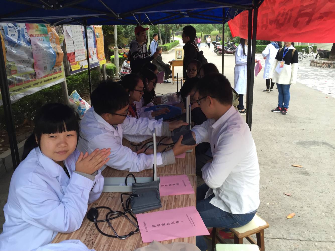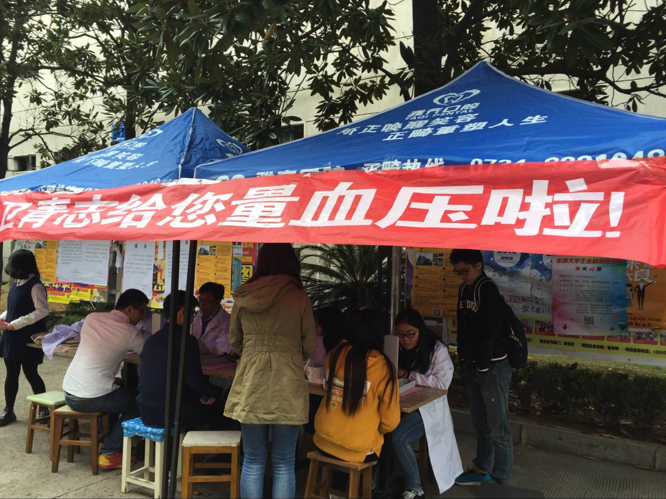 本着弘扬青年志愿者服务他人、关爱他人,为他人提供帮助的精神,南华大学best365英国在线体育青年志愿者分队于10月29日在南华大学红湘校区北校食堂前以及蒸湘区平湖公园广场处开展了一次“全民健康之行”——免费为同学和市民测量血压的活动。