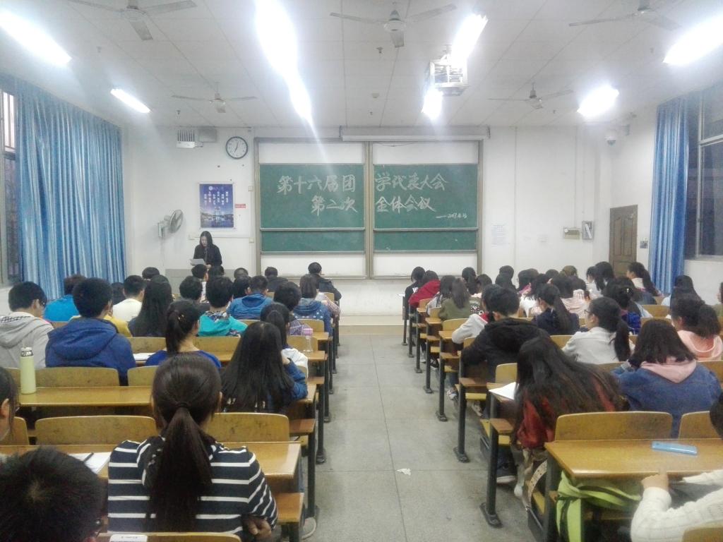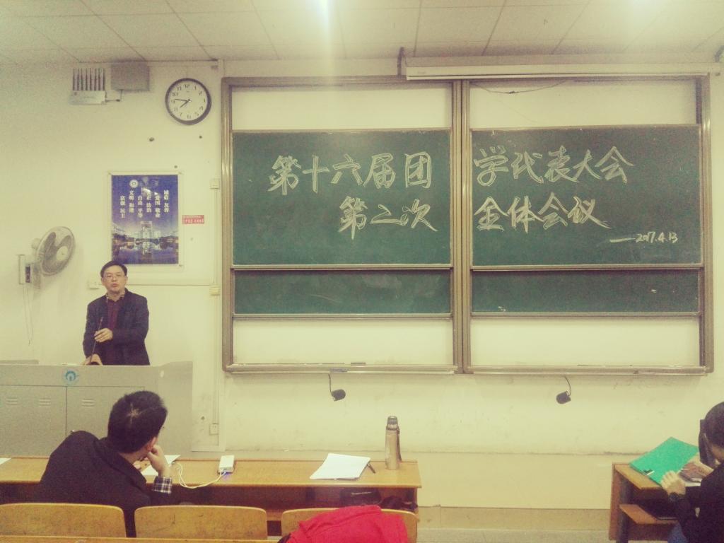 4月13日晚七点,best365英国在线体育在红湘校区一教105教室召开了第十六次团学代表大会第二次全体会议,公卫学院党委副书记田生军,团委书记涂彩蓉,学工办主任伍卫国莅临本次大会做了指导发言。到场的还有十六届全体团学干部以及14-16级各班代表。