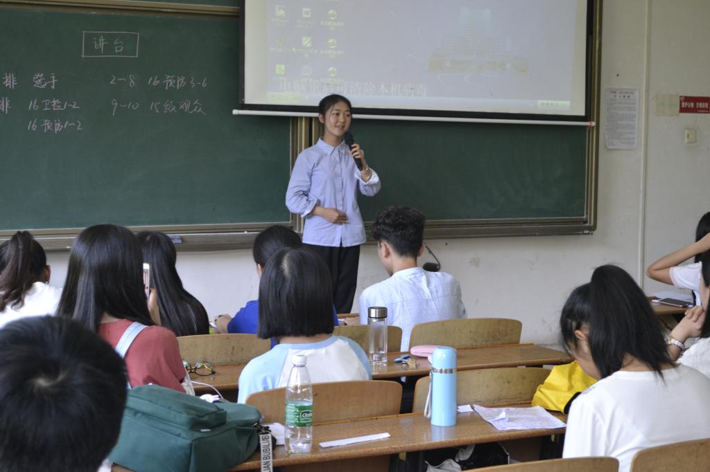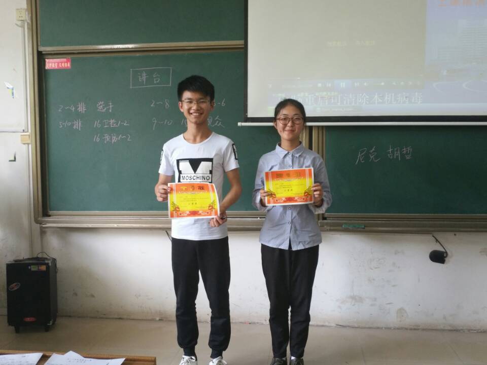 为提高同学们学习英语的积极性,特别是提高对英语口语训练的积极性,丰富学生的课余生活,best365英国在线体育于5月13日下午三点在红湘校区一教112举办英语演讲比赛。此次比赛的评委有学习部部长杨正敏,学习部副部长李邦,学习部副部长孙梦婷。观众由全体16级学生组成。