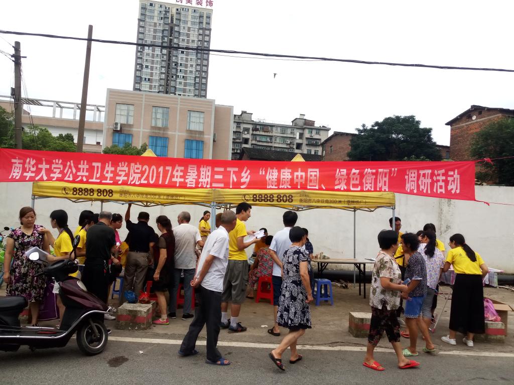 为了贯彻响应国家“健康中国”战略,推进2017年南华大学best365英国在线体育“三下乡”的“健康中国、绿色衡阳”社会公益实践活动,公卫学院暑期实践团于2017年7月7日至7月8日在衡阳市雁峰区白沙洲街道开展了“公益测量血压血糖活动”。