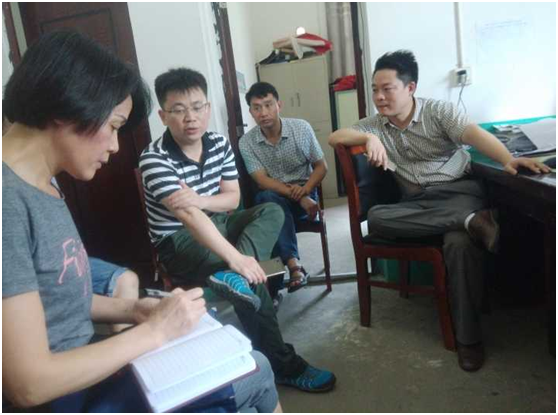 进村的第一天,杨慧仙院长与当地的村委会干部进行了深入沟通,仔细了解当地人的基本情况,从实际出发制定了切实可行的走访方案。走访正当酷暑季节,一顶草帽便成了她们的避暑利器。杨院长带领小组成员陆续走访了几户贫困人家,回到住处后又马不停蹄地整理资料,为了保证资料的正确性,进一步完善资料,特地请来了村一支书在旁检查。