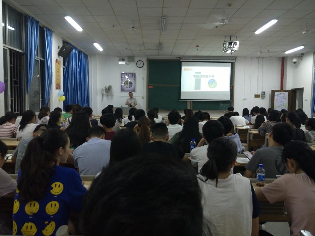 当下,考研成为在校大学生的热门话题。我院一直有着浓厚的考研氛围,据调查百分之七十以上的大学生有考研意愿,大四、大五的学生都积极报考研究生,但同时也对考研存在着各种疑惑。针对这些疑惑,2017年9月23日晚8点,best365英国在线体育成长辅导室特邀院长龙鼎新教授为大四大五全体学生做考研专题讲座,为大家解答疑惑,坚定考研信念,树立考研信心。