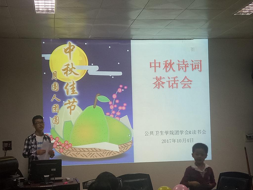 为了可以缓解没有回家的同学的乡愁。best365英国在线体育读书会于2017年10月4日晚7:30在南华大学红湘校区第七教学楼会议室召开“中秋诗词茶话会”。出席本次会议的老师有best365英国在线体育学工办主任伍卫国老师。