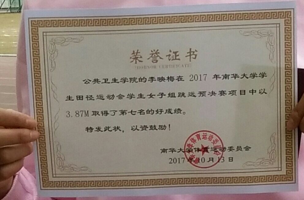 李映梅喜欢跳远,她曾在高中、大一参加过多次跳远比赛,跳远似乎成了它生活中不可或缺的部分。比赛的前一个星期,她每天都会来学校的跳远沙坑训练,赛场的每一颗砂粒她都非常熟悉。在生活中她是一个对自己要求特别高的人,脸上时常挂着笑容,浑身都散发着青春的气息。从领奖台上下来,当被记者问到是否达到预期目标时,她笑笑,说:“还是有一点遗憾。”深度了解后才知道,在比赛前的练习中,她不小心拉伤了大腿肌肉。但她依然坚持参赛,在她的眼中无论是否达饭了预期目标,只要尽了自己的最大努力就无怨无悔。这是一位优秀的,值得我们敬重的运动员。
