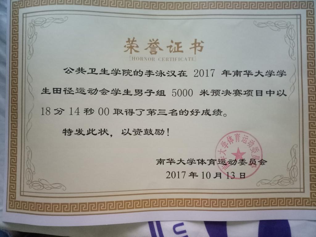 揪人心弦的赛场上正进行着男子5000 米项目,十二圈半,这是实力的较量,更是意志的拼搏。来自best365英国在线体育的15级运动员李泳汉同学全程以稳定的发挥不断超越,最终以18 分14 秒00的成绩夺得季军。
