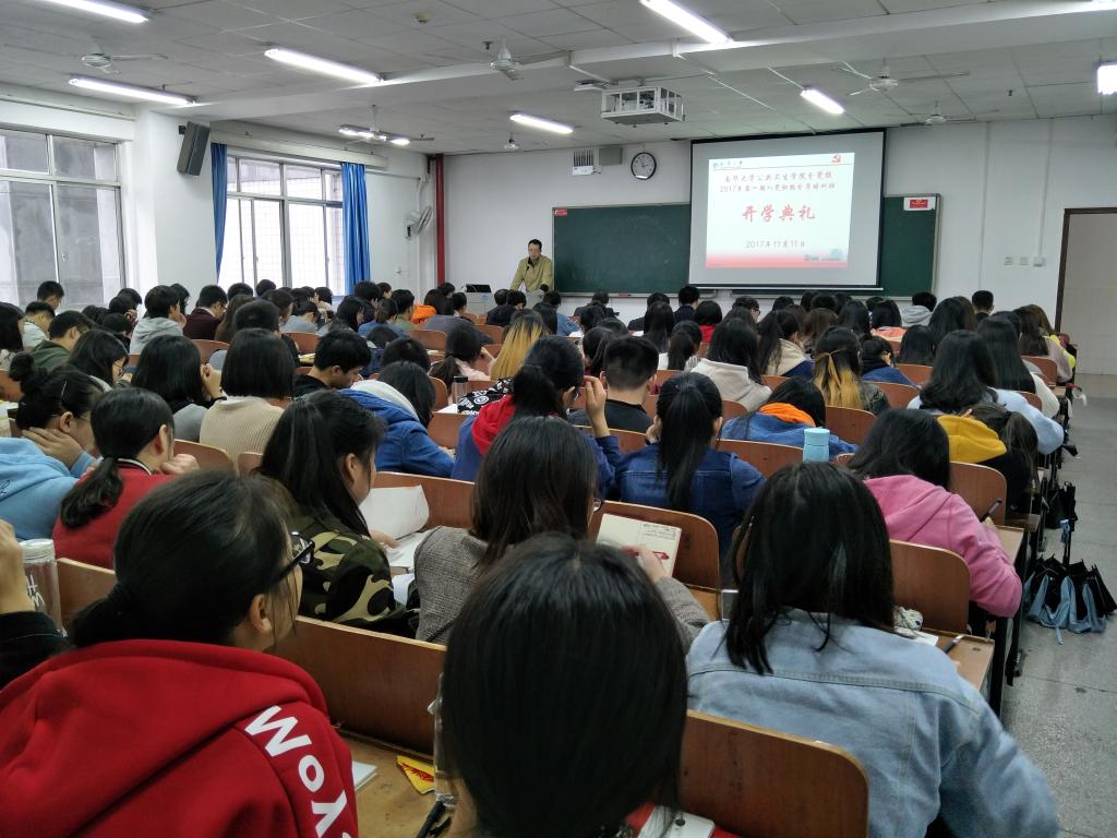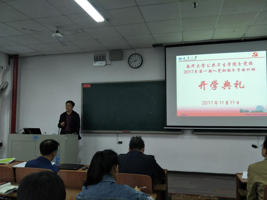 11月11日,南华大学best365英国在线体育分党校2017年第一期入党积极分子培训班开学典礼在南华大学红湘校区一教213教师隆重举行。出席本次典礼的嘉宾有:best365英国在线体育院长龙鼎新、best365英国在线体育党委书记张天成、 院党委副书记田生军、院学工办主任伍卫国以及院团委书记蒋剑红,2017年第一期全体入党积极分子参加了此次典礼。