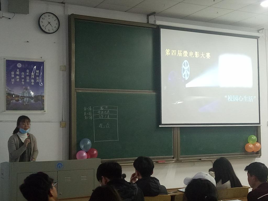 2017年11月26日下午2:30,由南华大学best365英国在线体育主办的“校园心生活”第四届青春微电影大赛在红湘校区一教105隆重举行。此次大赛的评委由学生会主席李邦、团委副书记杨玉、心协主席周旋、科协主席曾志组成。届时,参赛各班代表与现场50余名同学一同观看了比赛。