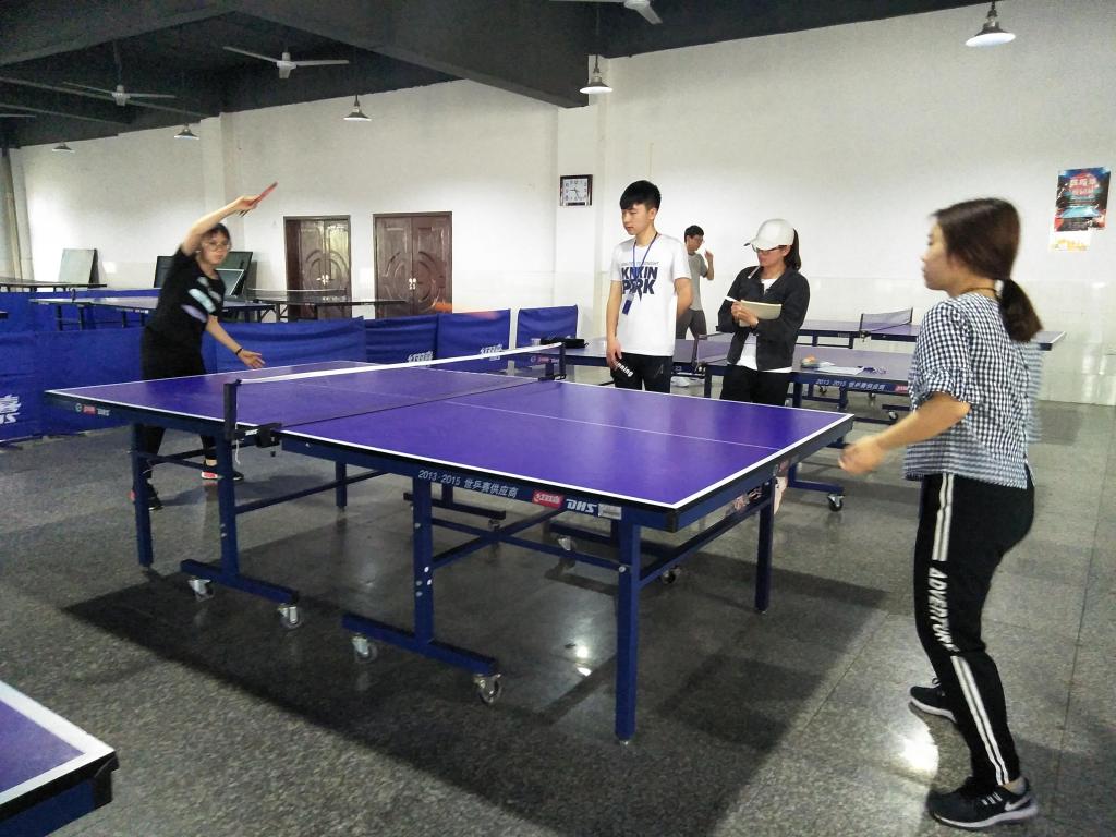 比赛哨声一响,参赛选手迅速进入状态,在工作人员的组织下,比赛秉着公平,公正,公开的原则进行,赛前通过抽签的方式决定单打与双打的各参赛者参赛顺序。在一片加油呐喊声中我们迎来了男子双打的第一组,赛场上,球员们灵活地挥舞着球拍,不断调整运球姿势,单打也是十分精彩,直拍、横拍、扣球、旋转球、弧线球等层出不穷,“ 推、挡、削、拉、 抽 ”,一个个动作犹如行云流水一般流畅,有时巧妙的回球、犀利的扣球不时赢得场上阵阵掌声和喝彩声。选手的每一次挥拍都牢牢地牵动着场上观众的眼神,小小的银球在台案上来回穿梭,划出一道道美丽的弧线。比赛现场高潮迭起,观众兴致高涨,阵阵叫好声鼓舞着参赛选手的士气,紧张又有序的比赛牵动着每位球员与在场观众的体育热情,经过层层比赛角逐,最终旋风队——朱英华,任佳团体以默契的配合获胜。本次乒乓球比赛的最终结果是女子组16级陈欣荣获第一名,17级选手唐龙娟和黄小宾分别荣获二、三名,男子组17级林茂发获得冠军,15级曾志和17级的肖守礼分别荣获二、三名。