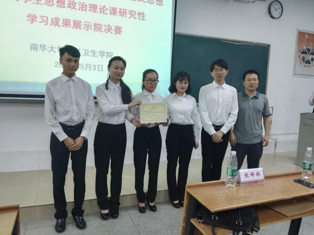 首先由每个比赛小组派一位代表上台抽签决定比赛顺序,比赛铃一响,选手们便整装待发。每组的研究性学习成果展示比拼分两个环节——学习成果展示环节和答辩环节。本次竞赛主题有5个,分别为《习近平新时代中国特色社会主义思想的理论渊源研究》、《新时代中国社会主要矛盾转化研究》、《中华民族伟大复兴的历史使命研究》、《新时代青年的成长成才》、《习近平新时代中国特色社会主义思想基本方略与幸福新湖南建设》。第一组选手是来自卫检一班的展示团队,学习成果展示环节中她们因为对展示的内容不太熟悉,与观众的互动过少,未能带动现场氛围。紧接着第二组同学以新颖有序的出场方式吸引了观众们的眼球,一瞬间她们这个团队成为了全场的焦点。她们的成果展示表达流利大方,解说到位,赢得了现场评委的一致好评,但是由于成果展示环节过长,成为了比赛的遗憾点。随着比赛的进行,观众们变得疲劳起来,但是最后一组的出现让大家眼前一亮,她们全程脱稿,组员之间团结互助。在投影仪电源被突然断掉的情况下其组员朱俊亮依然从容不迫的完成了最后的解说。随后评委对本次比赛进行总结和点评。黄教授指出:“每个研究性学习小组都准备得很充分,但同时也存在两个突出问题,一个是对资料的查找不够充分,总结不到位,小组应该注重加以提炼和分析,另一个是研究性学习成果上可以从继承和创新两个方面进行研究。”紧接着张教授,唐副教授也对比赛进行了点评,鼓励best365英国在线体育同学再接再厉,创造佳绩。最后第六小组摘得本次比赛桂冠,田书记、孙老师、评委老师与获奖小组进行合影留恋。至此,best365英国在线体育大学生思想政治理论课研究性学习成果展示决赛圆满落幕。