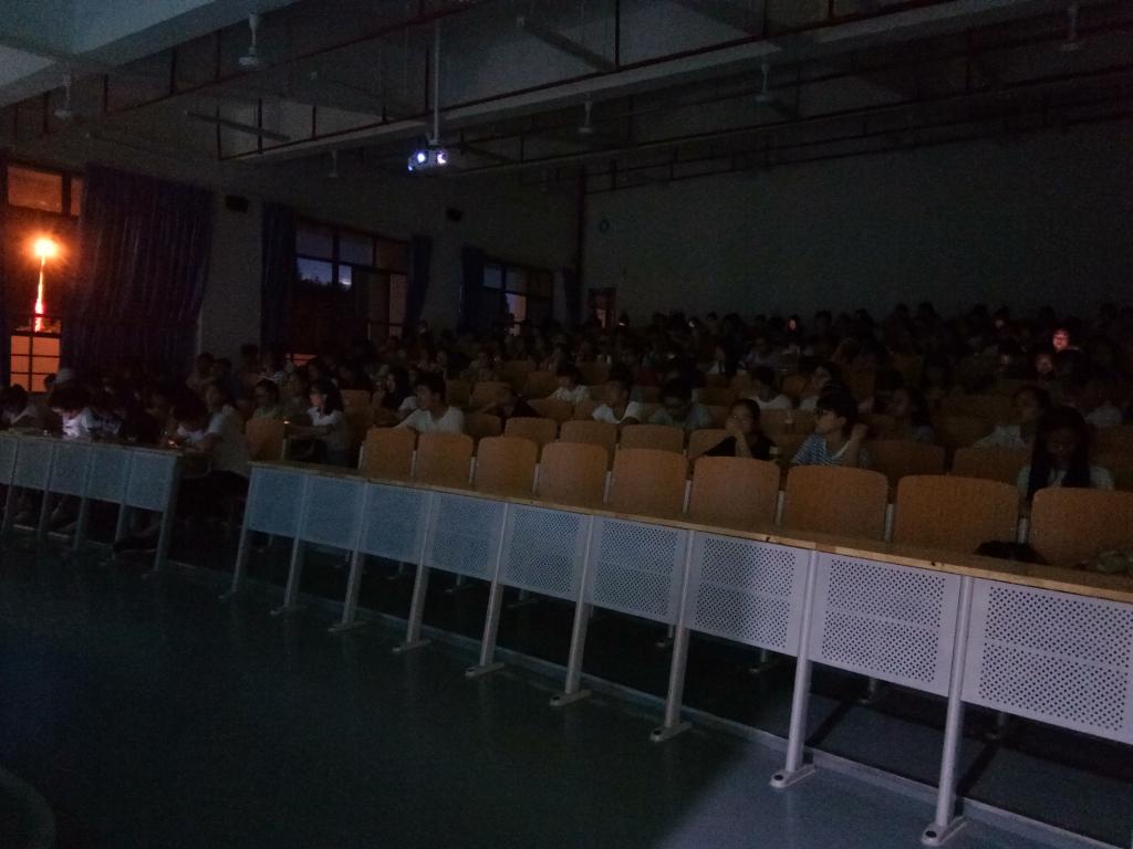 主持人致开场白后正式播放电影,观影过程中,教室里鸦雀无声,大家都看得十分投入。许多人纷纷感叹对于艾滋病患者所受到的来自整个社会的歧视和不公,十分难忘男主角病态的模样,他憔悴却异常坚定的眼神,令人动容。