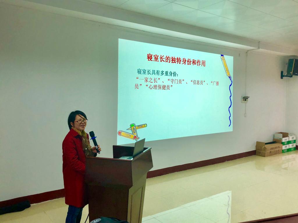 会议伊始,蒋老师讲解了寝室长在寝室的独特身份和作用以及什么是朋辈辅导员。寝室就像一个“小家庭”,寝室长就是家长,应该用一种包容的心态了解并帮助同学。紧接着介绍了寝室朋辈心理辅导员的职责。随后,蒋剑红就学习、生活、情绪、行为、精神、个性六个方面列举了一些大学生心理异常的表现;强调了朋辈辅导员对同学进行辅导时要注意尊重、真诚,要实事求是,要学会换位思考,更要在交谈时讲究倾听、探问和鼓励的技巧。接下来,她用两个例子教给大家一些大学生常见心理问题的处理方法。会议最后,蒋老师对学生提出期许“做心灵的使者,让每一个生命都精彩。”