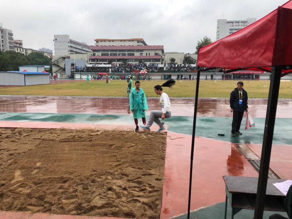10月20日,令人瞩目的跳远决赛在南华大学红湘校区北校田径场进行。这天天气虽然阴雨连绵,乌云密布,但寒风和暴雨并不能减少李映梅对比赛的热情。赛前,她一边认真地做热身运动,一边密切关注着其他运动员的比赛动态。哨声一响,只见她迅速助跑、腾空,稳稳着地,划出一道优美弧线。在激烈的角逐中,李映梅凭着顽强的意志和坚忍不拔的精神在比赛中脱颖而出,取得了跳远决赛第四名的优异成绩,为我院赢得了宝贵的一枚奖牌。难能可贵的是,李映梅在第二天的三级跳远比赛中再接再厉,取得了全校第七名的佳绩。因为在大运会上表现突出,她也荣获了我院“优秀运动员”称号。