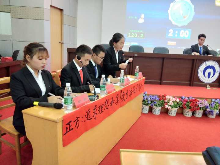 第一场是第三、第四名的争夺赛,正方为18卫检01班,反方为18预防01班,正方以享受生活的自由时间和追求理想的劳动时间是冲突的、追求理想和享受生活具有阶段性、国家的发展需要我们先追求理想,再来享受生活三个方面论述了追求理想和享受生活是矛盾的。反方以追求理想是生活的一部分、追求理想是自己选择的生活方式,追求的过程即是在享受生活、两者的目的上是相互统一的三个方面论述了追求理想和享受生活是不矛盾的。比赛一开始便十分激烈,可谓是针尖对麦芒,在经过各个辩论环节的精彩角逐后,比赛分出胜负,正方4号与反方3号获得了“最佳辩手”的称号,反方18预防01班获胜。