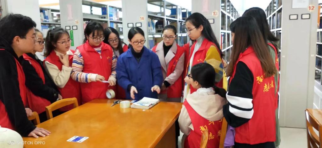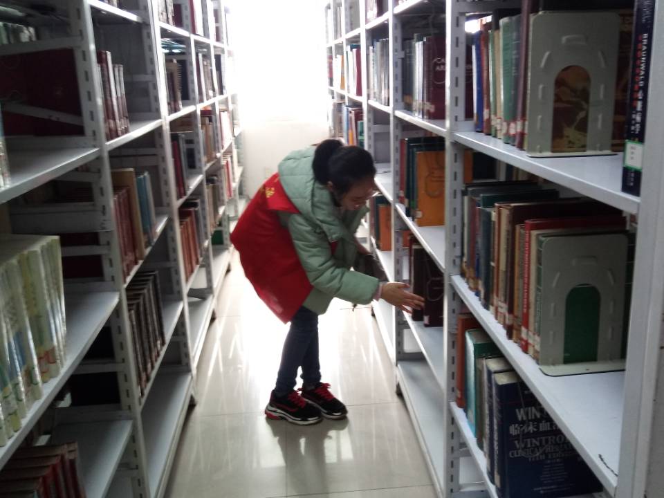活动伊始,实践委员将全体志愿者分为五组,并要求全体志愿者穿好红马甲,在老师的指导下分不同阅览室进行清扫整理工作。第一、二、四组分管图书馆五楼医学阅览室,他们努力认真,在不打扰到其他同学学习的情况下完成了擦书架、擦桌子、拖地、修书、补书、整书等工作;第三组负责二楼文学库清扫,整书工作,他们效率极高,完美的完成了老师给的任务;第五组负责外文库增添图书索书号工作,在工作中大家充满热情,配合默契。活动结束后,全体志愿者在图书馆前集合并拍照留念。