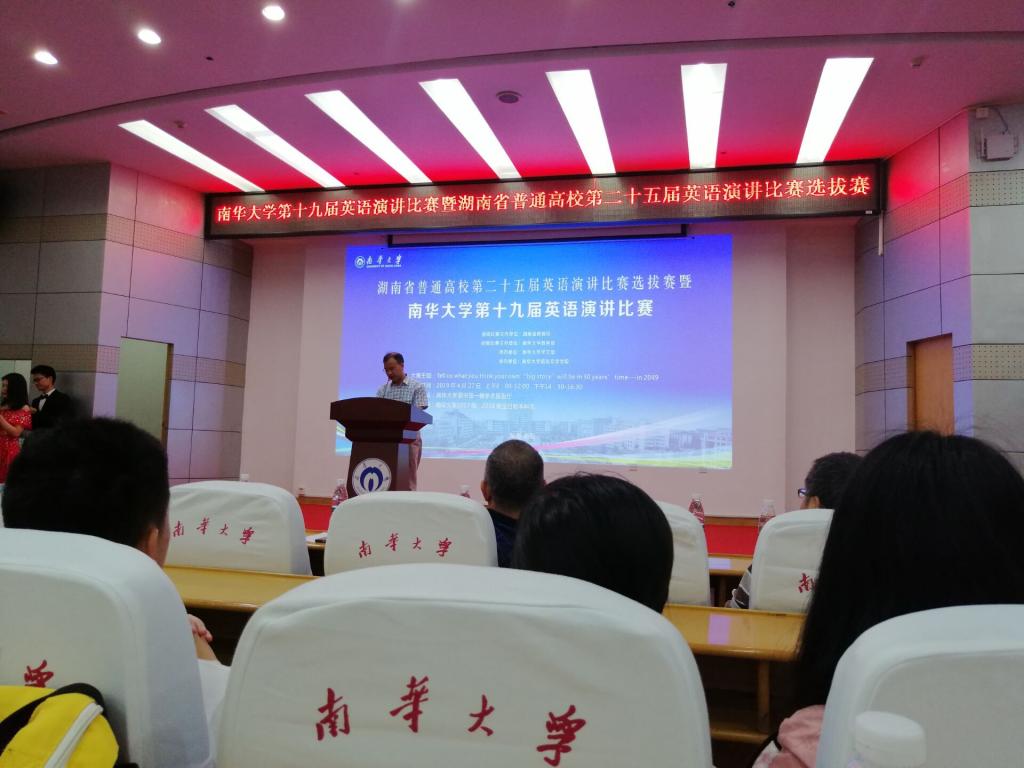 为进一步提高我校广大学生的英语水平,丰富大学校园生活,4月27日,南华大学第十九届英语演讲比赛于红湘校区图书馆报告厅顺利举行。