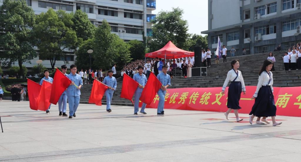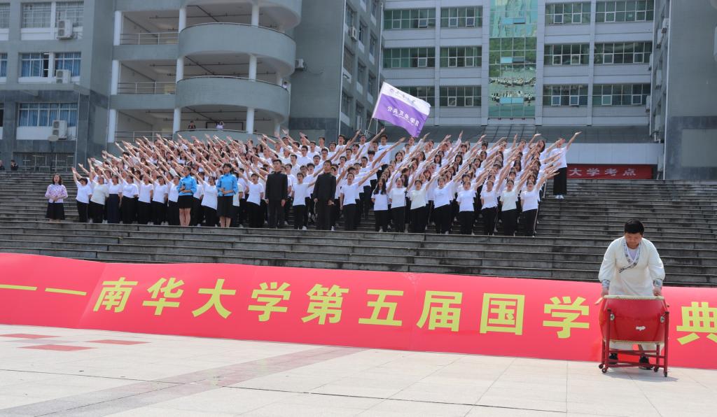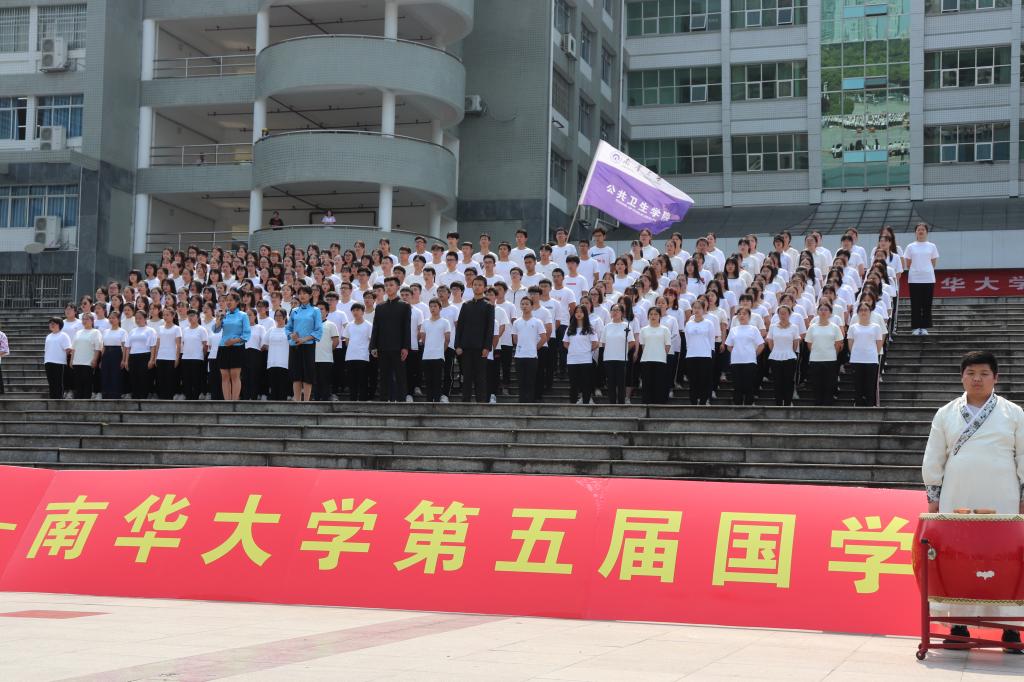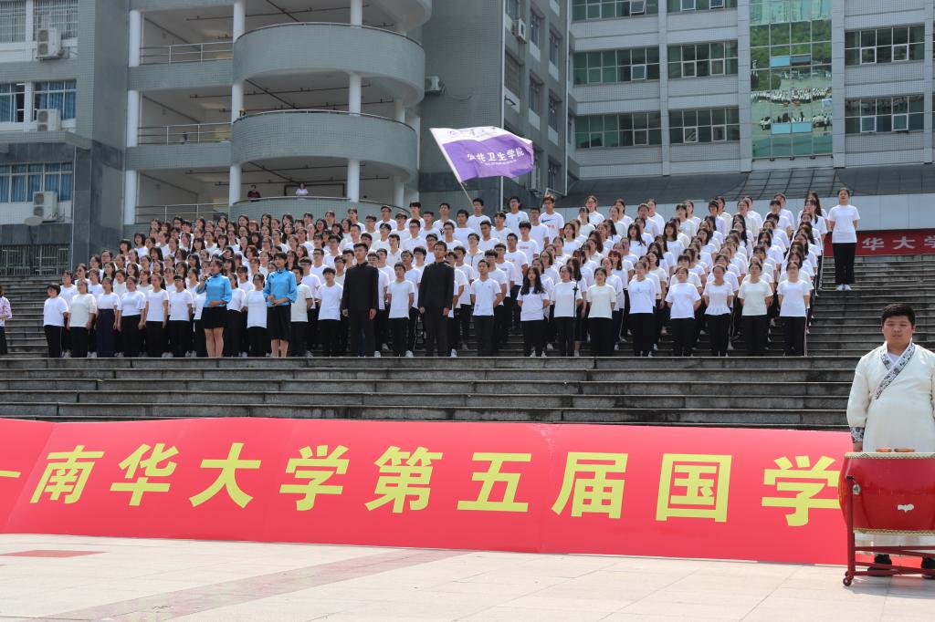 5月11日下午,由南华大学共青团委员会和南华大学学生会联合举办的以“爱国心、奉献情、奋斗行”为主题的南华大学第五届国学经典诵读比赛红湘校区分赛场在南华广场隆重举行。红湘校区共有9个学院代表队参加比赛。best365英国在线体育全体18级学生参赛。出席本次比赛的嘉宾评委有南华大学副校长何旭娟、南华大学党委委员苏玲、党政办公室主任谢四平、学工部副部长廖迎春、教务部副部长张志军和校团委副书记李海洋。我院党委副书记田生军和团委书记蒋剑红莅临比赛现场,为我院参赛代表队加油打气。