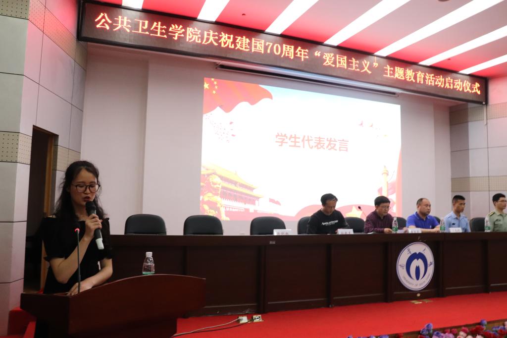 在庄严肃穆的国歌声中,本次活动正式开始。首先由学生代表优秀党员代表李映梅同学做“爱国主义”,她在发言中回顾了中国的抗战史,一个个爱国人士谱成了救亡图存的壮丽篇章。“我们要在机遇与挑战的大潮中与国家一起成长,共同发展,坚定自己的理想信念,在追梦路上,不忘初心,砥砺前行。”在发言中她说道。