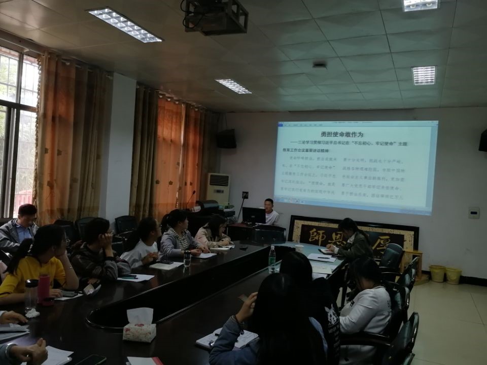 会上,支部副书记陈曦首先带领大家再次深入学习了“不忘初心,牢记使命”主题教育的文件,以及“勇担使命敢作为”主题学习资料,并向同志们深刻讲解了“担使命、履职责、矢志为民服务”的三个方面问题,担使命——我们担负着什么样的使命、履职责——我们怎样担负使命、矢志为民服务——我们为谁担负使命。随后,各年级党员对这个主题展开了深入探讨和交流,分享了自己对“担使命、履职责、矢志为民服务”的感想和体会。