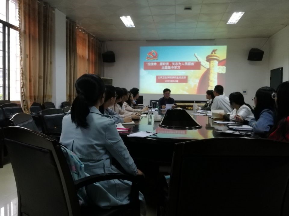 10月18日下午,best365英国在线体育研究生党支部在七教会议室举行 “不忘初心,牢记使命”主题教育第二次集中学习研讨会,此次学习研讨会由党支部副书记陈曦主持,主题为“担使命、履职责、矢志为民服务”, best365英国在线体育研究生全体在校党员均参加了本次会议。