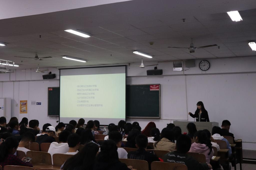 在主持人激情昂扬的开场白之后,本次经验交流会正式开始。首先上台分享经验的是来自15预防04班的孙梦婷同学。她首先向新生们提出两点学习上的建议,并介绍了若干有关学习的软件,还为大家介绍了她科研和实习的相关经历。紧接着是16预防01班的张琼同学上台分享了许多科研和辅修英语双学位方面的经验,并给了新同学们许多实用的建议。接着上台分享的是17卫检01班的胡慧婷同学,她是一位文体双精的人才,不仅学习成绩优异,还是院里的运动明星。她向新生们分享了如何协调学习、工作和生活的经验,在场的大家深切体会到了大学生活的无限可能性。最后为大家带来经验分享的是17卫检02班的黄兰同学。她作为南华大学民兵预备役大队的一员,诚恳的向大家讲述了如何权衡学习、部门和社团之间的关系,以她大二的兼职经历为例,让同学们明白了“努力终会得到回报”的道理。