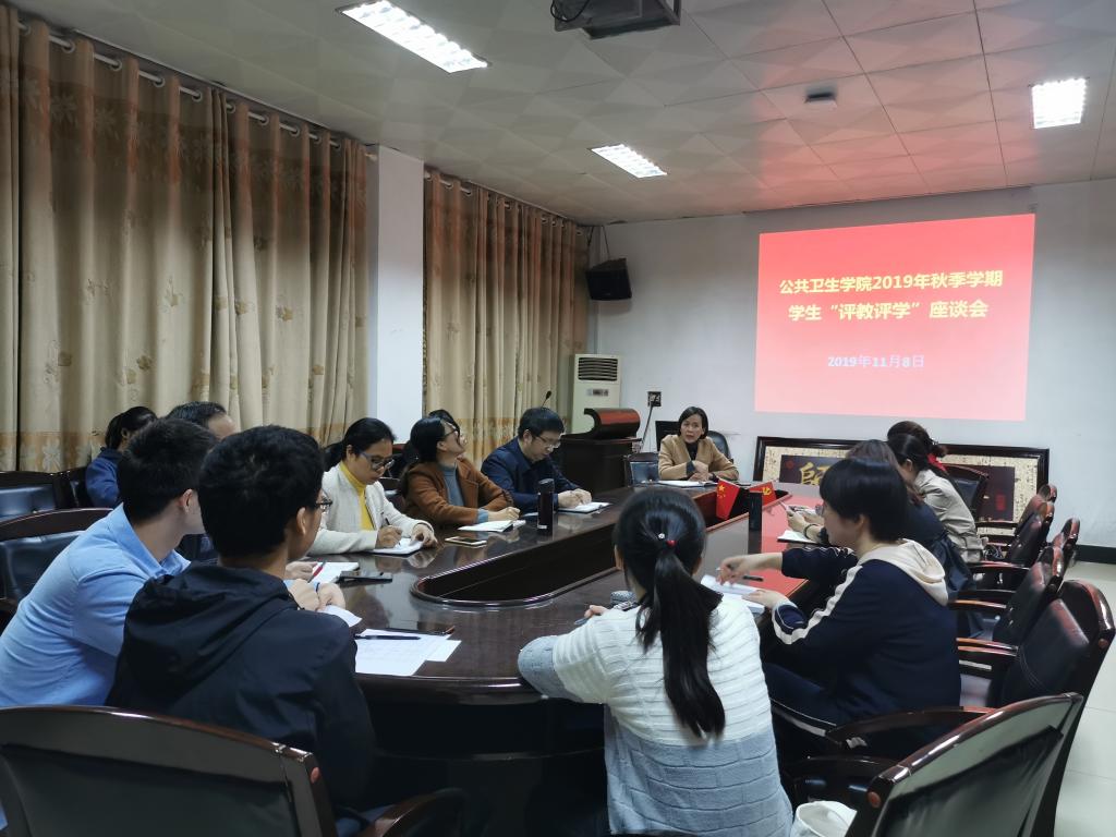 11月8日晚,南华大学best365英国在线体育2019年秋季学期学生“评教评学”座谈会在红湘校区七教会议室顺利举行。本次座谈会由学院副院长杨慧仙老师主持,各系室主任、秘书、院督导、教学办和学工室老师及各班学习委员参加会议。