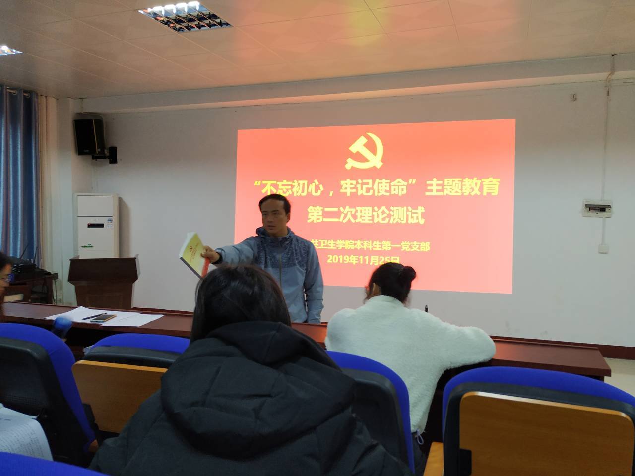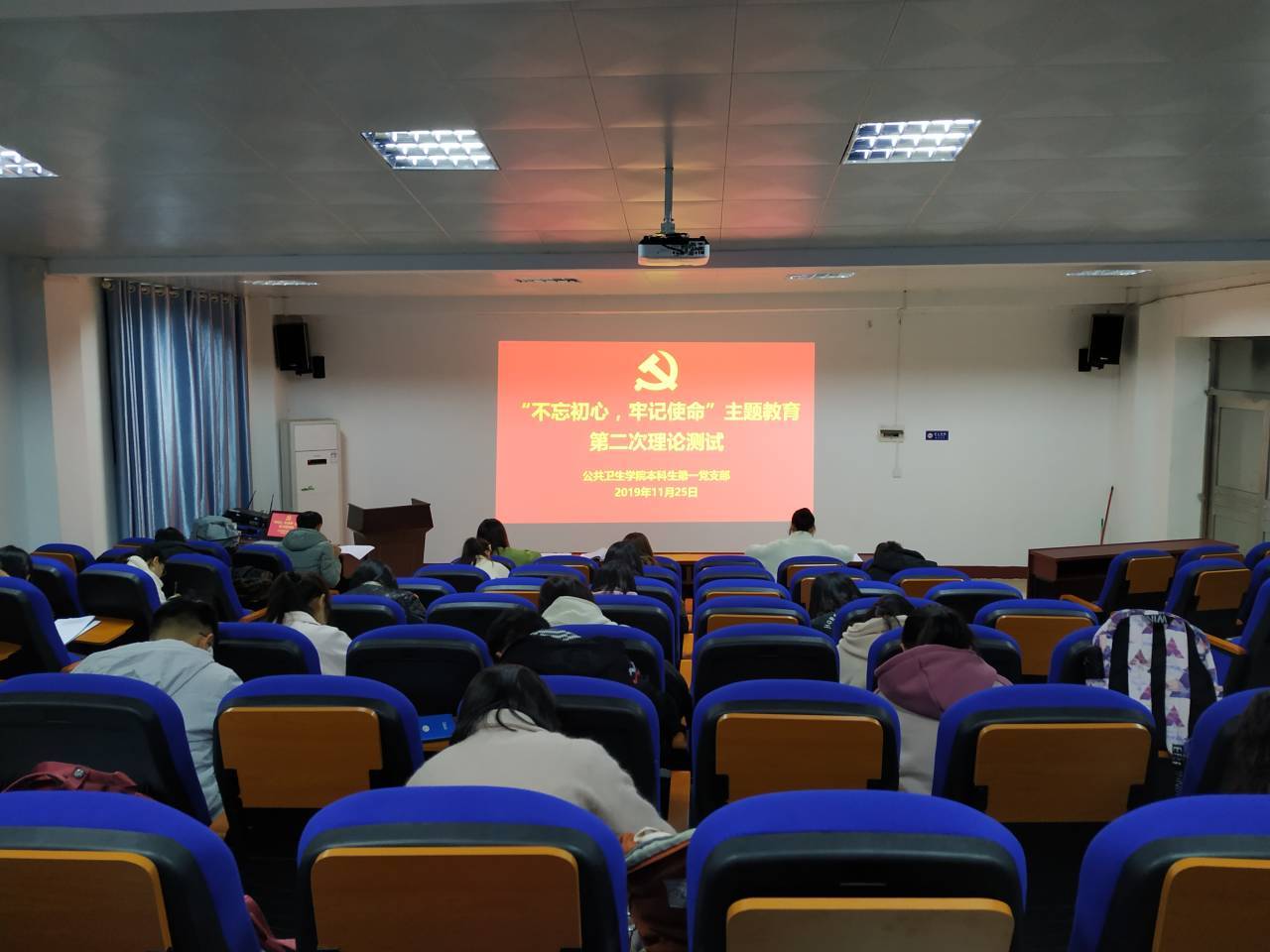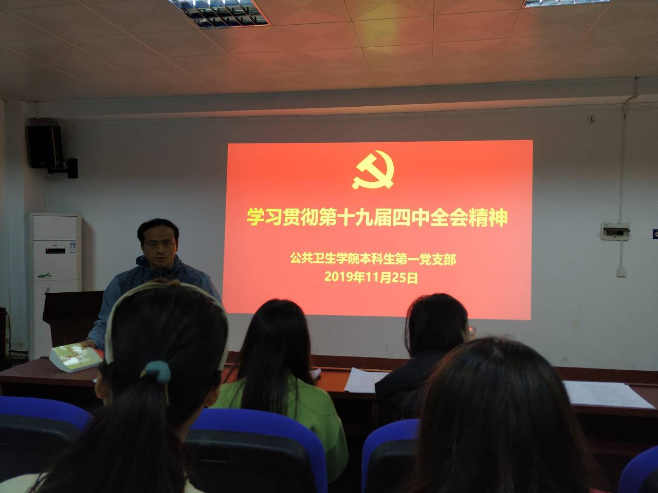 为全面贯彻落实党的十九届四中全会精神,11月25日中午12:45,best365英国在线体育本科生第一党支部全体党员在三教101学术报告厅集中学习了习近平总书记在党的十九届四中全会上的讲话以及《党的第十九届四中全会<决定>学习辅导百问》。