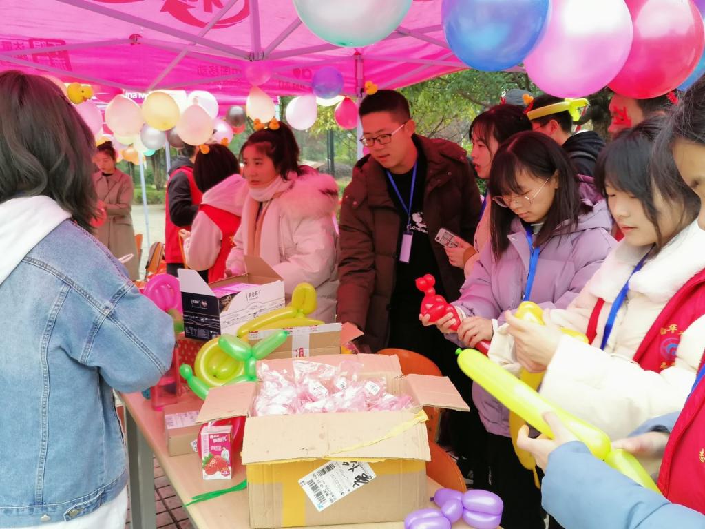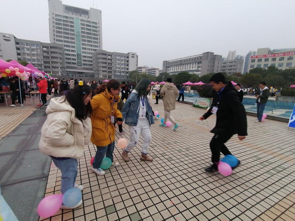 一大早,青年志愿者们便忙碌了起来,五颜六色的气球被一个个的吹起挂在半空中吸引过往同学参加,各式各样丰厚的奖品整齐的摆在了桌面上。志愿者们还设计了若干非常有趣的游戏,比如套圈、大富翁、养生小知识问答、等等,将早已准备好的养生知识融入游戏中,吸引了很多的路人参与其中。虽然上午下着雨,但是志愿者们的热情没有丝毫减弱,每个参与者脸上挂满了真诚的笑容。