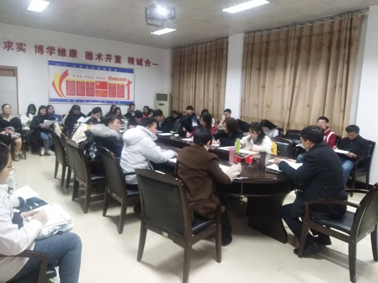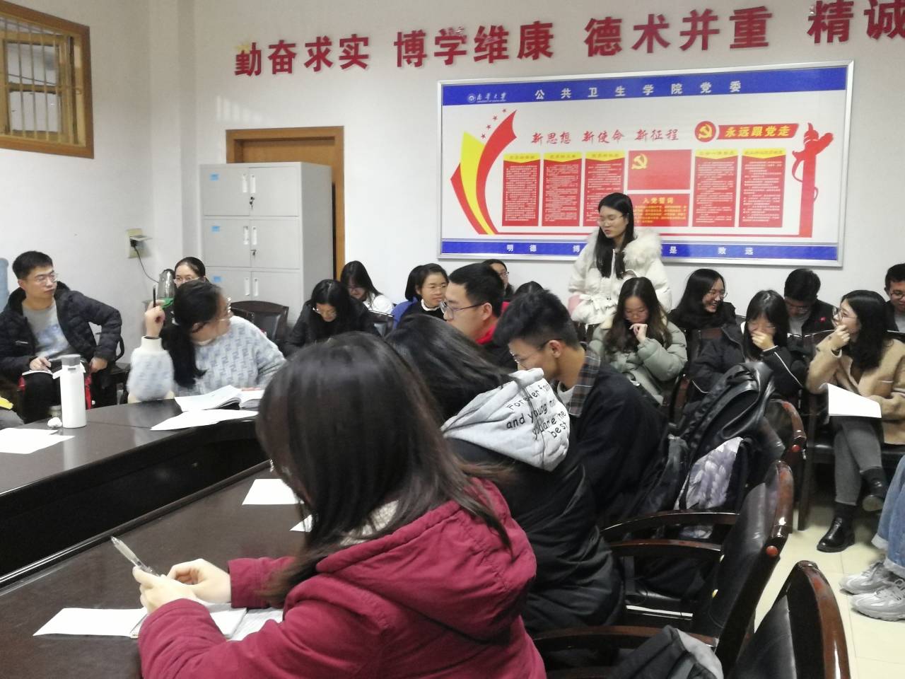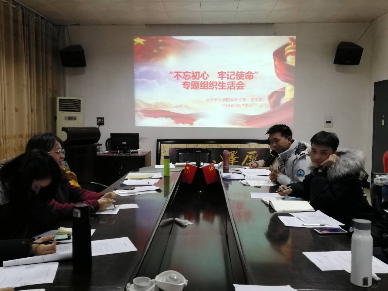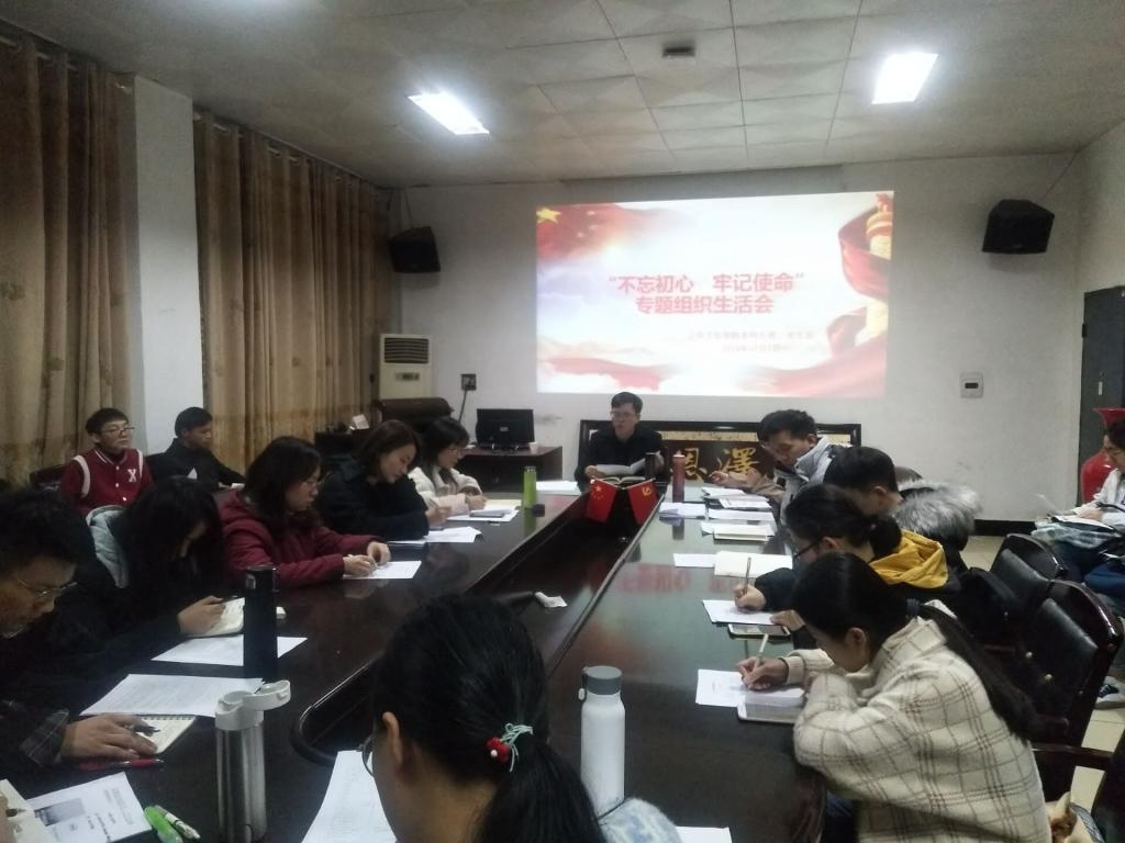 会议包括理论学习、会前情况说明、党员自评和互评、领导点评等环节。首先,全体党员学习校党委下发的《关于召开2019年度基层党组织专题组织生活会和开展民主评议党员的通知》,田书记向全体同志传达了上级党委关于开展民主生活会的重要精神和要求。接着,蒋老师汇报了本次组织生活会的会前准备情况,并代表支部班子就支部班子成员存在的问题进行对照检视情况汇报。随后,蒋老师带头进行了自我批评,并让其他同志对其进行批评指正。会议中每位党员同志都对自身存在的不足进行了深入剖析,其他党员同志和群众充分发表意见,真正做到了让党员同志“红红脸”和“出出汗”。随后,在座的党员和群众开展了党员民主评议。会议最后,田书记对本次民主生活会做了简要总结,肯定了本次组织生活会达到了预期的效果,同时也指出了有待提高的方面,并激励全体同志要不忘初心,牢记使命,勇于开展批评与自我批评,要让“红红脸”和“出出汗”成为常态。