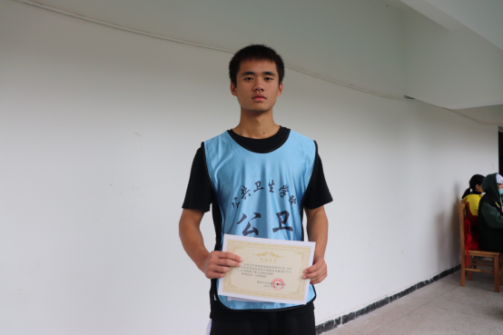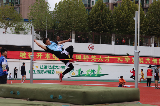 与此同时,田径场另一边的男子跳高预决赛也在大家的期待中到来,运动员邹春苗代表我院出战,比赛前的试跳,他积极调整着自己的参赛状态,势必要把最好的一面展现给我们,赛出公卫人的澎湃精神。比赛中的他,迈着轻盈的步伐开始助跑,在杆前双腿发力起跳,跨过那道杆子,完美落地。在经过数轮的选拔之后,邹春苗为公卫取得了男子跳高第七名的好成绩,体现出青春的激情和奋力拼搏的精神。
