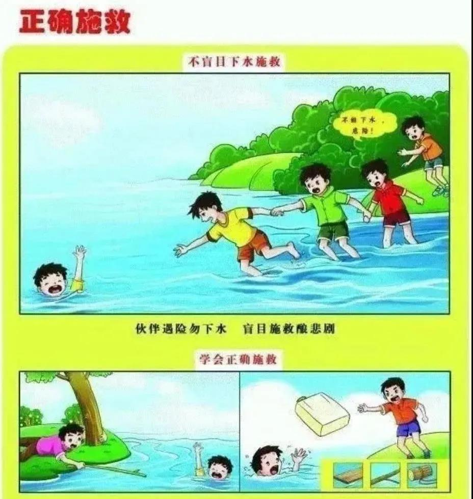 特别强调:不会游泳者发现有人溺水,不能冒然下水营救,应立即大声呼救,或利用救生器材施救。救人也要在自己能力范围之内!