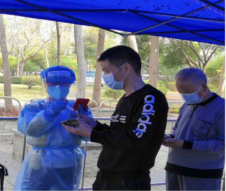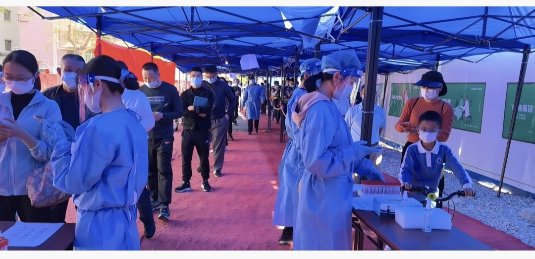在这场与病毒赛跑的竞赛中,流调和管控的疾控工作人员,基层忙碌的社区工作者和警察,穿上防护服采样的医护志愿者,维持采样秩序的保安,志愿协助扫码的志愿者和义工们和积极配合全民核酸的普通人,每一个人都在肩负抗疫的使命,勇往直前。
