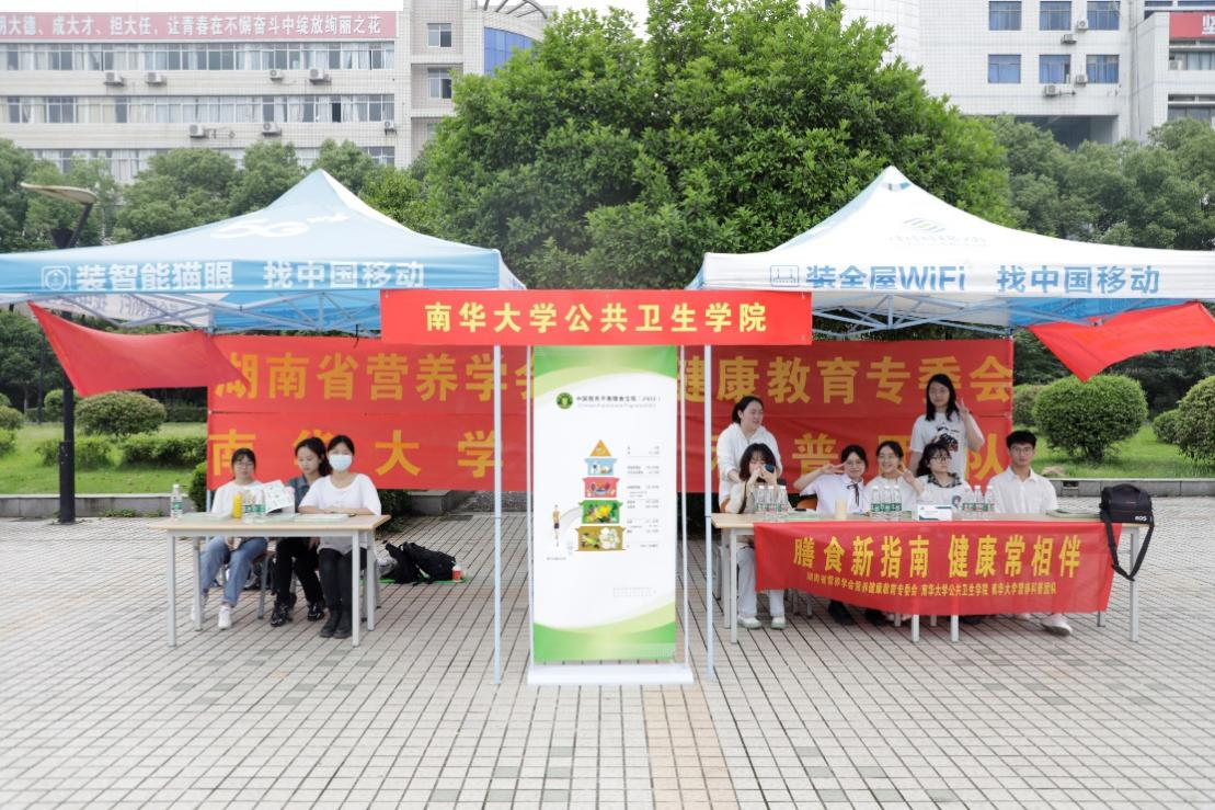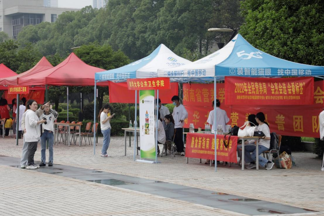 南华大学营养科普团队自2015年成立以来,一直坚持开展全民营养周宣传活动,通过多种种形式开展进社区、进食堂、进乡村、进课堂、进学校等进行宣传,具有一定的影响力。5月8日,营养科普团队受南华大学护理学院科普宣传团队邀请,联合参加珍爱生命,维护健康为主题的科普宣传活动。营养科普团队在南华大学红湘校区联合开展2022年“健康中国 营养先行”、“膳食新指南 健康常相伴”全民营养周广场科普宣传活动。