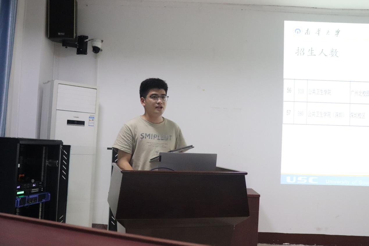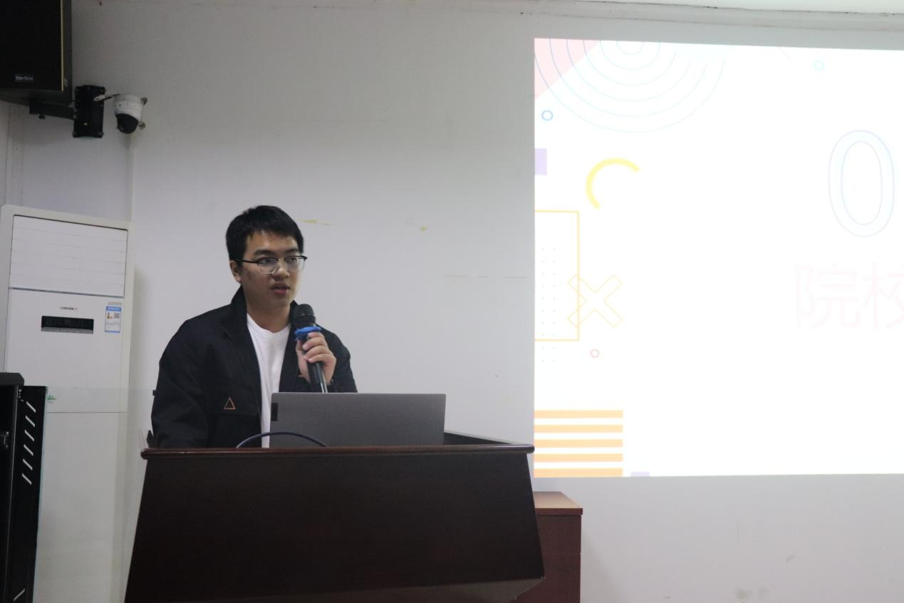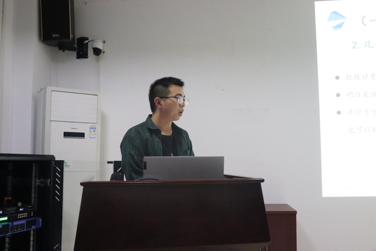 接着,唐嘉鹏同学分享经验。他清晰、有条理地说明了考研大体路线和部分细节。他也强调了英语的重要性,建议可以充分利用碎片时间记忆单词。针对考研焦虑,唐嘉鹏说道,不要被他人进度所影响,低年级学弟学妹们不必太过焦虑,可以先通过英语四六级和参加科研团队来丰富自己的履历,为考研铺垫。