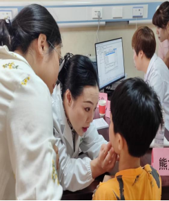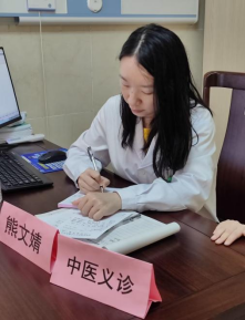 黄艳主任和熊文婧医师为小学生提供中医义诊服务