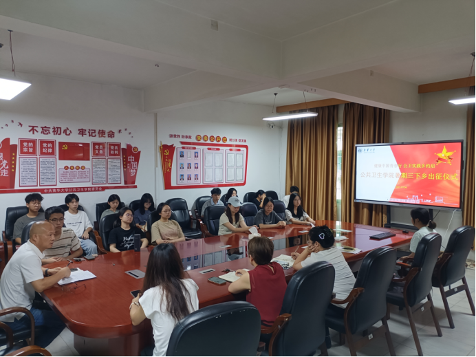 2025年7月4日下午,南华大学best365英国在线体育在学院行政楼三楼会议室举行了“健康中国青春行 公卫实践乡约启”2025年暑期“三下乡”社会实践活动出征仪式。院党委副书记曾志伟,辅导员,营养系、毒理系、环境系、卫检系、院青年志愿者“三下乡”团队指导带队老师及团队成员参加会议。