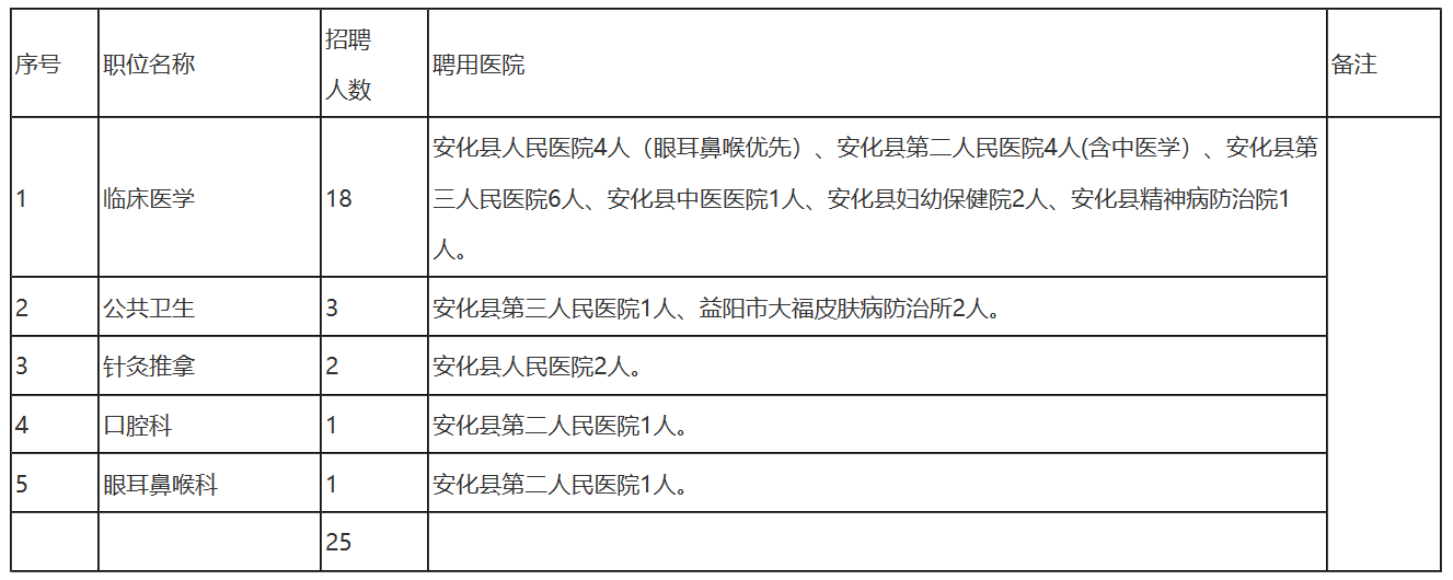 为进一步加强我县卫生健康系统人才队伍建设,充实基层医疗卫生技术力量,经研究,继续面向社会和相关高等院校直接招聘医务工作人员 25名。现将相关事项公告如下: