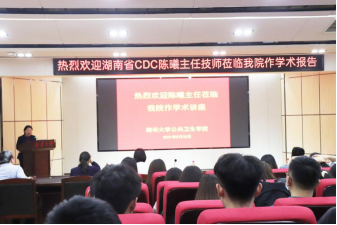 为贯彻落实党的十九届四中全会提出的“强化提高人民健康水平的制度保障”的要求,加强公共卫生服务体系建设、及时稳妥处置重大新发突发传染病作为治理体系和治理能力现代化的重要目标和任务。2021年5月23日,南华大学科研与学科建设部与best365英国在线体育联合组织邀请湖南省疾病预防控制中心副主任、学术委员会主任陈曦授于南华大学医研楼会议室作学术报告。出席学术报告的有南华大学best365英国在线体育副院长杨慧仙、肖锡林、公共卫生与预防医学学科带头人让蔚清、卫生检验与检疫系主任陈丽丽教授等。院研究生和部分本科生参加了此次讲座。本次报告由让蔚清教授主持。