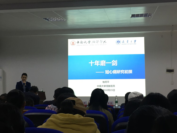 医学院99级临床医学专业校友柏勇平博士的学术讲座题为“十年磨一剑——冠心病研究初探”,从硝酸甘油的耐药性、能否解决冠状动脉支架狭窄、老龄患者冠状动脉侧枝三个方面为学生介绍了冠心病的研究情况。