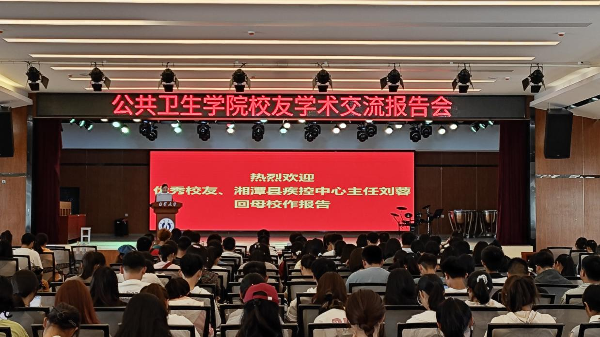 2023年10月15日,时值南华大学65周年校庆之际,优秀校友、湘潭县疾控中心主任刘蓉应邀回母校报告。best365英国在线体育党委书记龙鼎新以及在校师生参加了报告会。