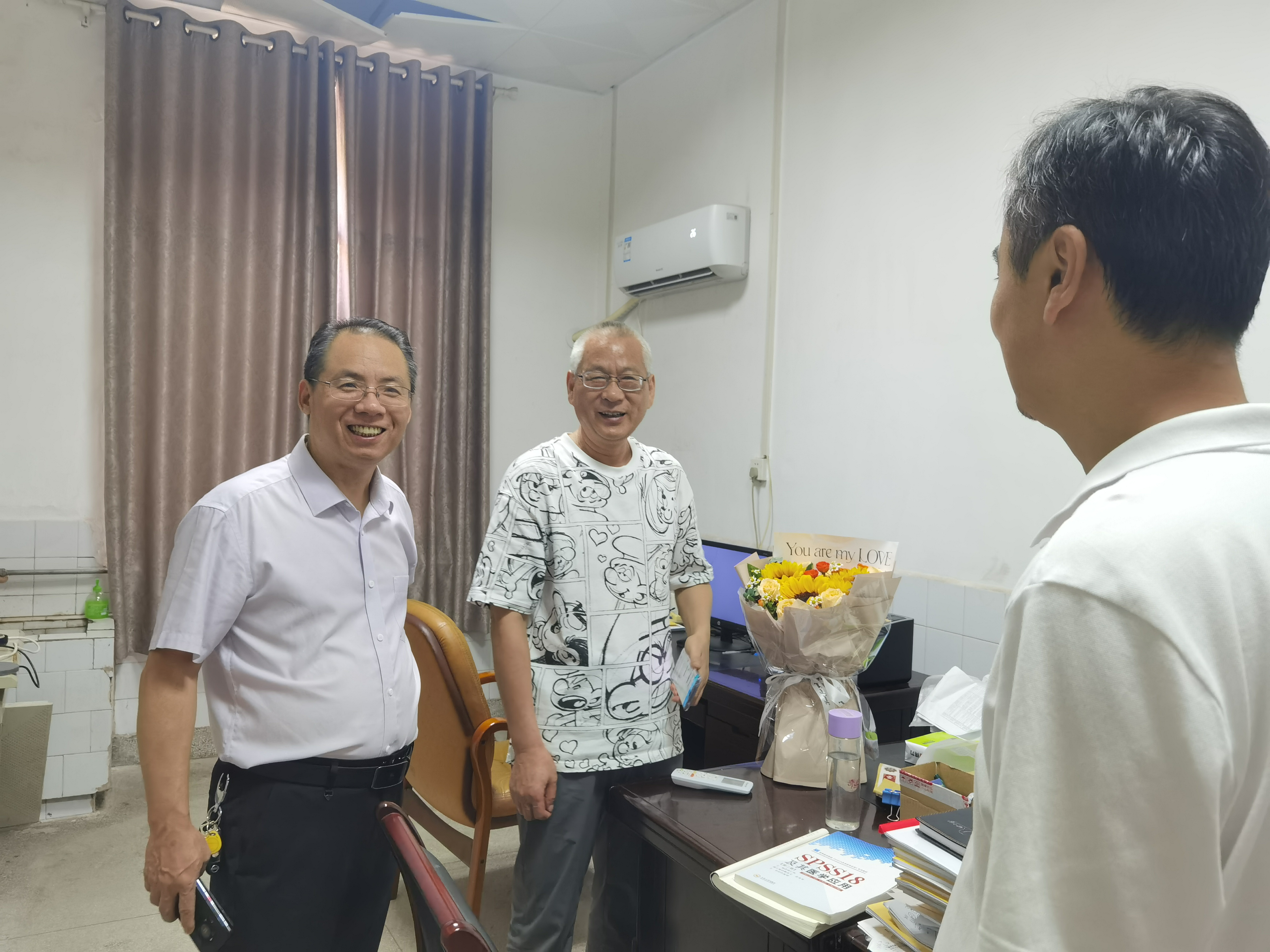 院领导在公卫楼和学院办公楼分别看望慰问了让蔚清、吴成秋、李纯颖、袁秀琴、谢红卫、张天成、陈新、龙斌、龙理良、张朝晖等资深优秀教师代表以及杨飞、牛湘衡、隆曦孜、曹毅等高层次人才。