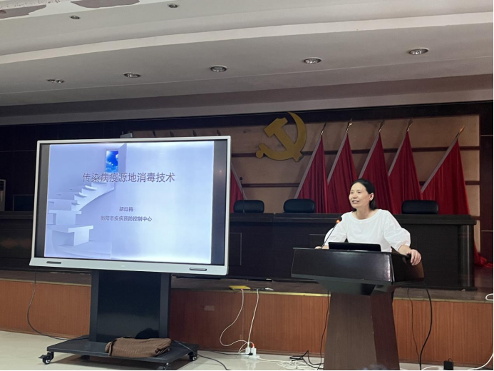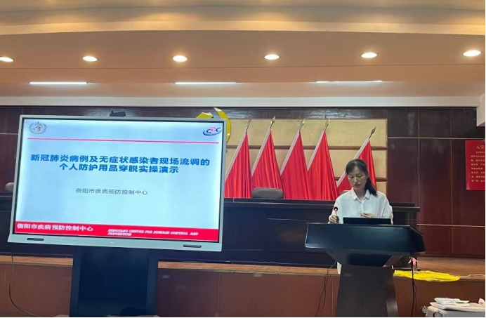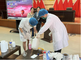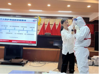 为凝聚学校与社会力量,强化校企合作,促进本科教育教学改革,拓宽学生成长渠道,同时为了充分发挥疾控中心行业优势,高质量办好南华大学第十三届大学生医学技术技能大赛(预防医学赛道)。8月28日~8月30日,我院在衡阳市疾控中心领导的大力支持及业务科朱玲科长的精心安排下,由周筱艳老师带队的40名预防医学赛道参赛选手和8名教师参加了在市疾控中心举行的个体防护等12个教学内容的公共卫生技能培训。本次培训由我院张朝晖副院长主持并致辞,市疾控中心的任琼、邹观湘、罗强、周美兰、龙彩虹、王可雨和胡红梅等专家分别为学员进行了详细讲解、示范和实操指导。